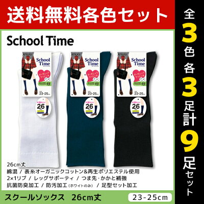 3色3足ずつ 送料無料9足セット School time スクールタイム レディースソックス 26cm丈 スクールソックス 靴下 アツギ ATSUGI | ガールズ キッズ 女の子 ソックス くつ下 くつした 学校 学生 スクール 通学 小学生 中学生 高校生 黒 白 紺 ハイソックス 制服 無地 通学用