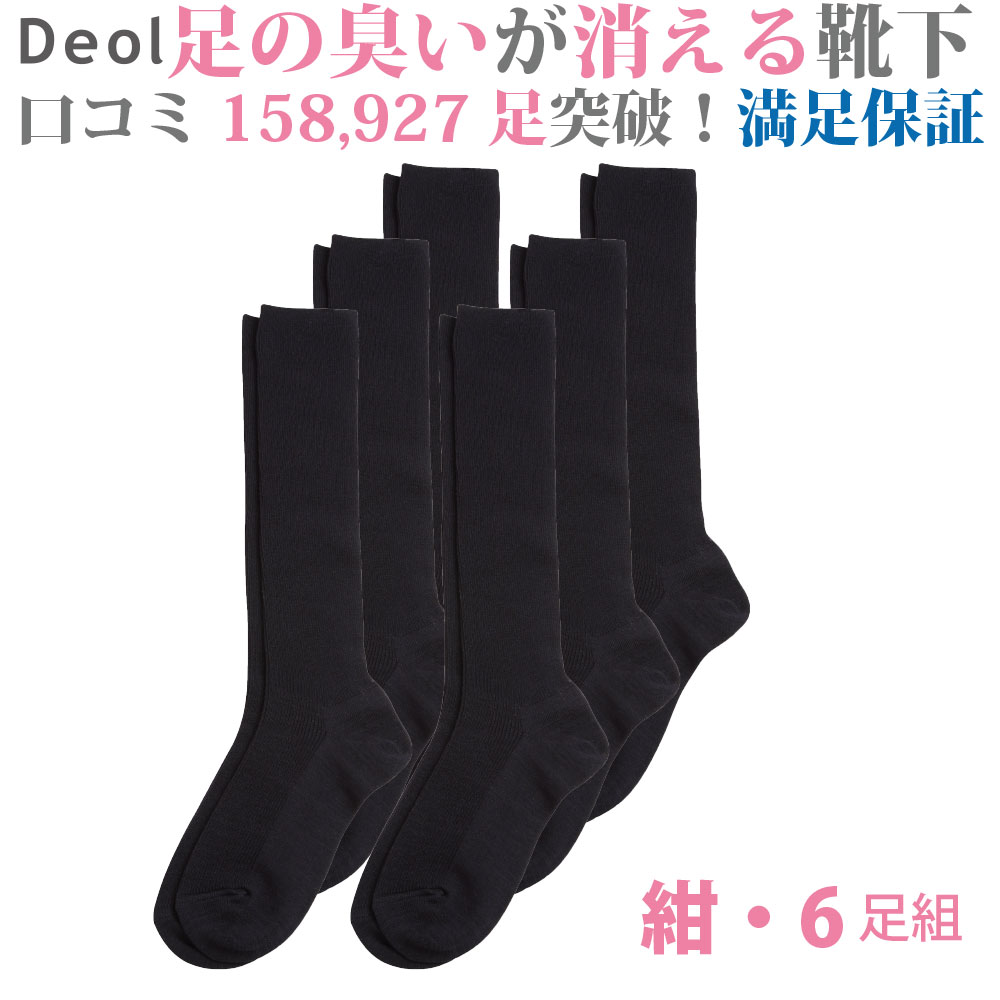 \クーポン発行中/【消臭靴下】デオル ハイソックスWOMEN 同色6足組 紺| 消臭ソックス 臭わない靴下 くつ下 足の臭い 足臭い 汗臭い ニオイ レディース 女性 ソックス 無臭靴下 通勤 通学 スクール 臭くならない靴下 お買い得 まとめ買い デオルソックス 興和堂 【あす楽】