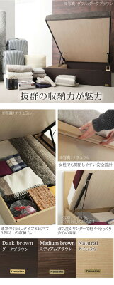 ●メーカー2年保証【セット構成】ベッドx1・マットレスx1【カラー】ダークブラウン・ミディアムブラウン・ナチュラル【仕様】■ベッド本体・床板:プリント紙化粧合板跳ね上げ収納:ガススプリングコンセント:1口1500Wコード長さ:約1.7m照明:LED0.2W◎組立品■マットレス張地:ポリエステル64%、綿27%、レーヨン9%中身:ウレタンフォーム、パームパッド、ポリエステル綿、防虫不織布コイル:マルチラススーパースプリング【サイズ】■ベッド外寸:幅141x奥行213x高さ87cm/約100kg床面高さ:33.5cm床面サイズ:幅141x奥行197cm収納サイズ:幅134/114x奥行188x高さ28.5cm■マットレス外寸:幅140x奥行195x高さ16cm/約23kg送料全国一律無料(沖縄・離島は配達不可)備考※お急ぎの場合は必ず事前に在庫確認を行って下さい。