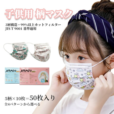 マスク 子供用 50枚 【送料無料1〜3日出荷】【全4種類20柄】 使い捨てマスク 柄 こども 高密度フィルター素材 花粉症対策 子供用マスク 不織布マスク カラー キッズマスク 柔らか 子供ますく ウイルス対策マスク 立体マスク かわいい 和柄 JIS基準適用