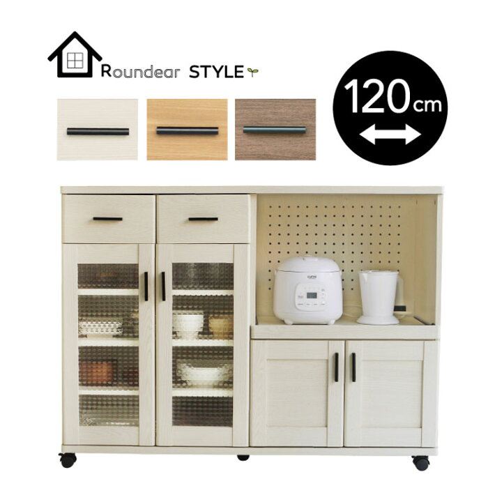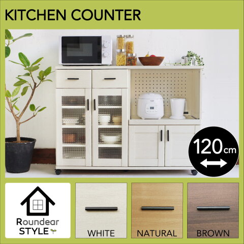 角を丸めた安全設計 キッチンカウンター キャスター付き 幅120cm ラウンディア kc-w006 【送料無料】 小さいレンジ台 コンパクト 食器棚 120幅 おしゃれ 安い 北欧 炊飯器置き キッチン 収納 一人暮らし