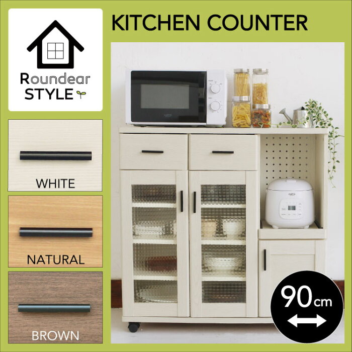 角を丸めた安全設計 キッチンカウンター 幅90cm ラウンディア kc-w005 【送料無料】 小さいレンジ台 コンパクト 食器棚 90幅 おしゃれ キャスター付き 安い 北欧 炊飯器置き キッチン 収納 一人暮らし