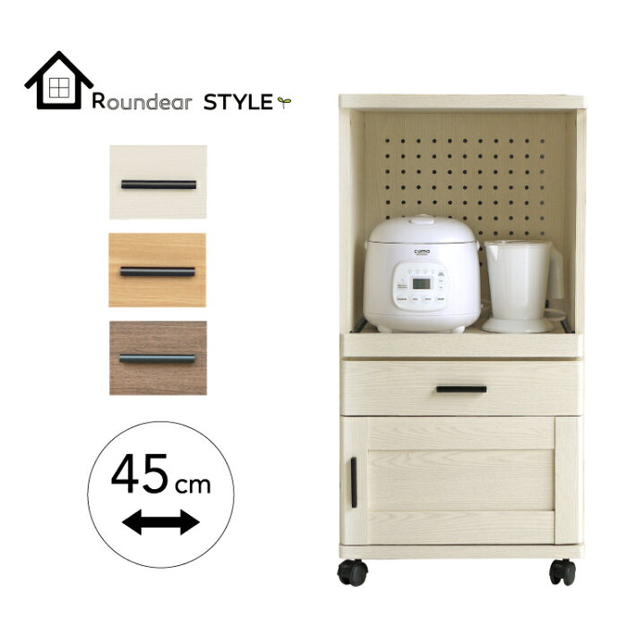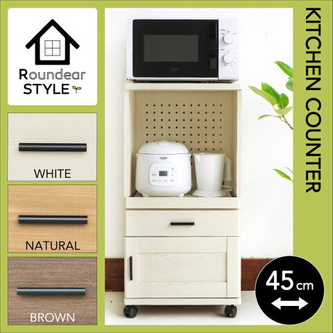 角を丸めた安全設計 ミニキッチンカウンター 幅45cm ラウンディア kc-w003 【送料無料】 小さいレンジ台 コンパクト おしゃれ キャスター付き 安い 北欧 炊飯器置き キッチン 収納 一人暮らし
