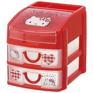 サイズ (約)幅15×奥行19×高さ16.5cm 材質 本体・引き出し=ポリプロピレン フタ=スチロール樹脂 キーワード ミニチェスト ハローキティ サンリオ 女の子 デスクチェスト 小物入れ 引き出し2段 保育園 幼稚園 小学校 お道具箱 キャラクター スケーター CHE3N 201711-02