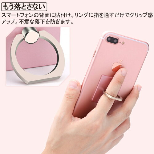 ● スマートフォンの背面に貼付け、リングに指を通すだけで グリップ感アップ!不意な落下を防ぎます。